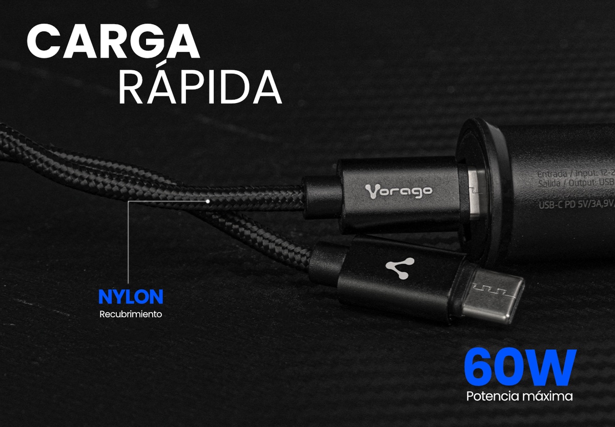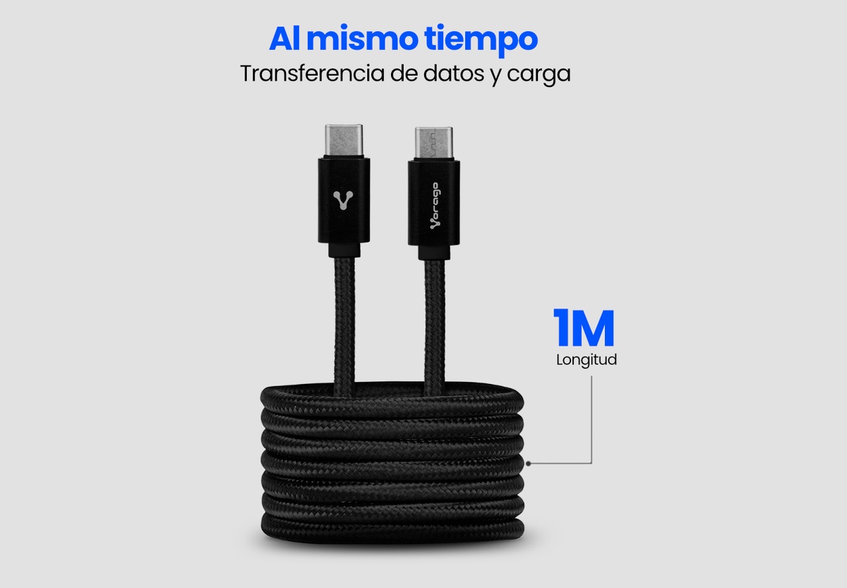 Vorago CAB-124 Cable USB tipo C, 1 m, transferencia de datos, negro