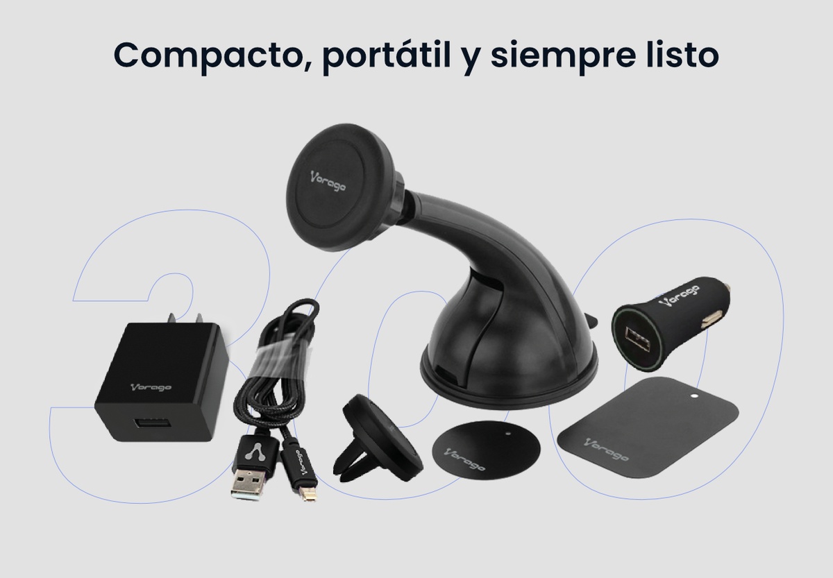 Vorago MK-300 Kit Accesorios para Celular Base, Imán para Auto, Cargadores de Pared y Auto, Cable Híbrido, Placa para Imán